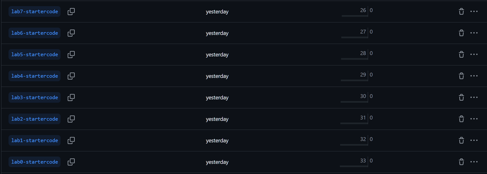 当我们确认了仓库本身含有这几个 startercode 分支,我们才能意识到,这恰恰就是我们想要的仓库。