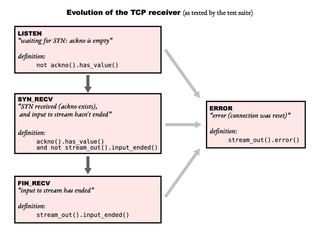 - 实际上 TCPReceiver 的 ByteStream 叫做 stream_out,是经过处理的网络数据输出给应用程序的出口,方便应用程序获取网络传输的数据。